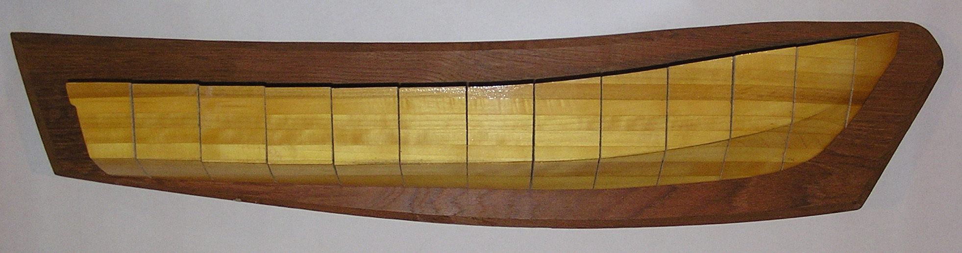 Half model of proposed Belizean fishing boat, carved by designer Kevin Russell