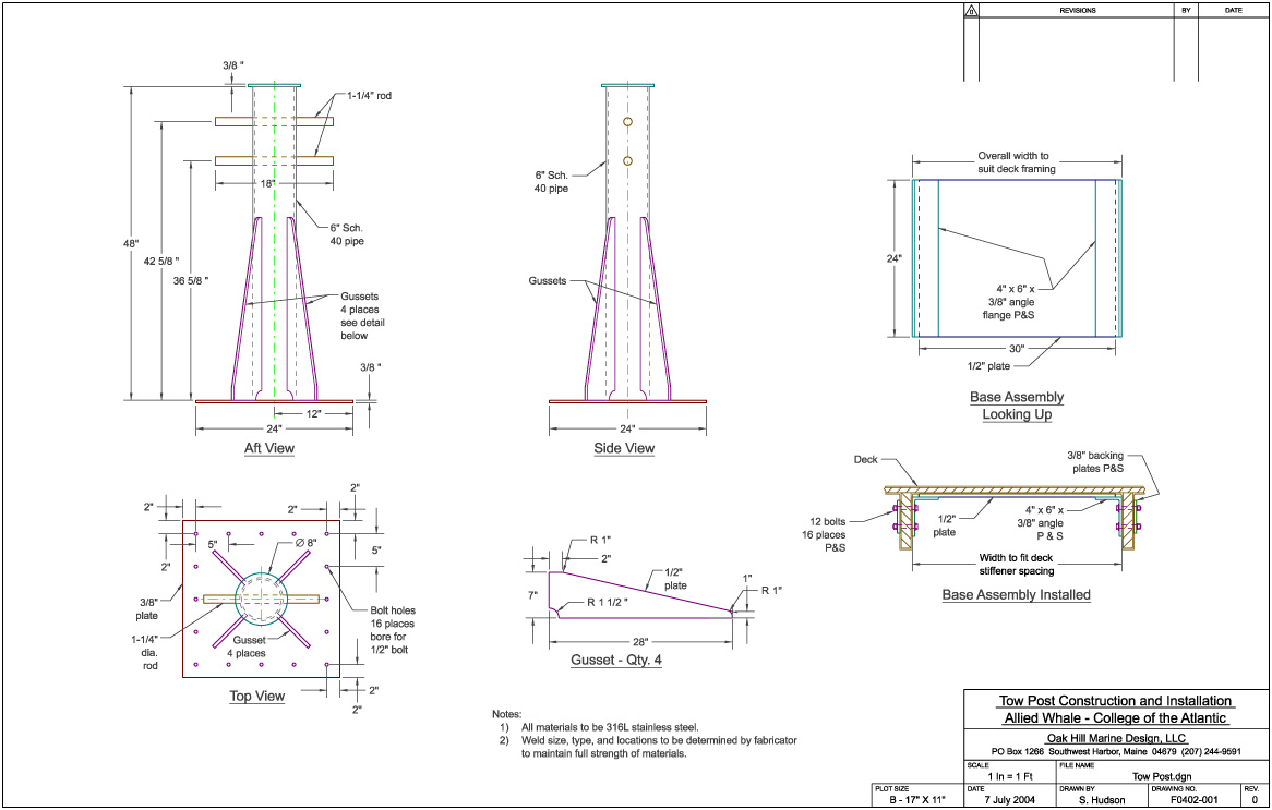 This drawing shows the final design of the post and the installation details.